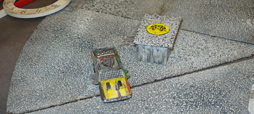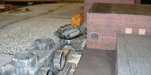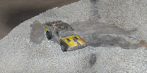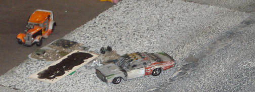 777's speed finally does him in after a hard skid he hits some rubble and sails